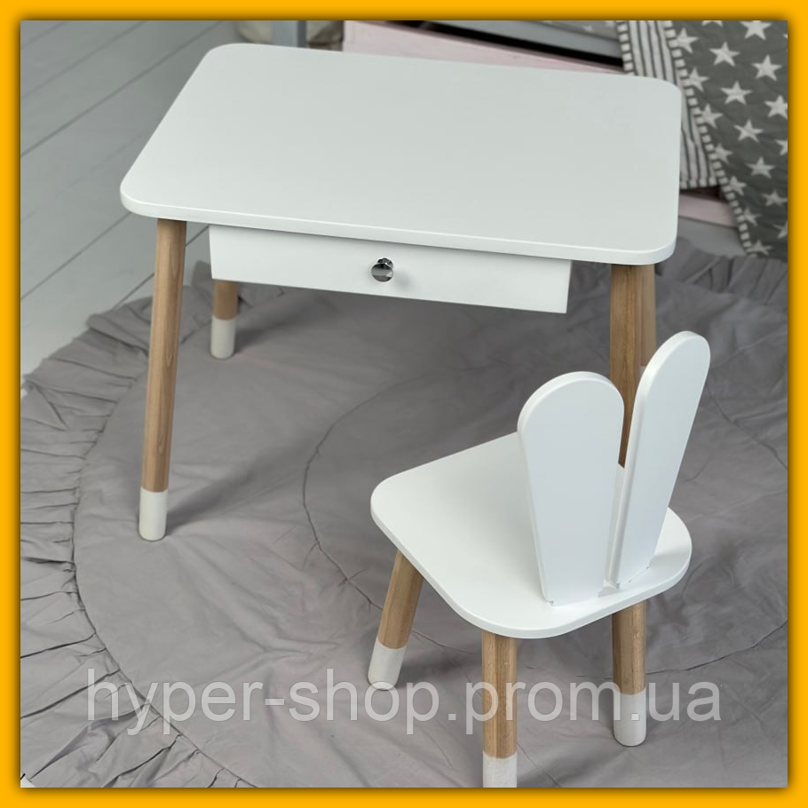 Яскравий дитячий столик для творчості з нішами, універсальний набір меблів дерев'яний дитячий столик і стільчик від українського виробника